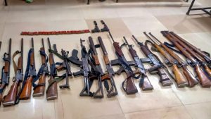 असम राइफल्स ने मणिपुर पुलिस के सहयोग से, 24 नवंबर को कांगपोकपी जिले के लुनखोंगजंग पर्वतमाला के लोंगजांग क्षेत्र में एक संयुक्त तलाशी अभियान चलाया और एक .303 राइफल, एक एसबीबीएल बंदूक, दो 9 मिमी पिस्तौल, एक लंबी दूरी की मोर्टार गोला बारूद और युद्ध बरामद किया। दुकानों की तरह. बरामद सामान को मणिपुर पुलिस को सौंप दिया गया।